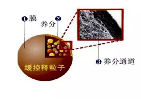 通過高科技製成的高分子樹脂包膜外殼來完成的,它的核心是把複合肥料或單質肥料包上一層均勻的外殼。當肥料施入土壤後,土壤水分從膜孔進入,溶解了一部分養分,形成飽和溶液,然後通過膜孔釋放出來,當溫度升高時,植物生長加快,養分需求量加大,肥料釋放速率也隨之加快;當溫度降低時,植物生長緩慢或休眠,肥料釋放速率也隨之變慢或停止釋放。