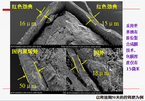 1、聚合成膜技術:采用世界獨有原位聚合成膜技術,包膜厚度僅有15微米。